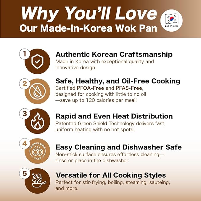 - ๐ก๐ผ๐ป๐๐๐ถ๐ฐ๐ธ ๐ข๐ถ๐น-๐๐ฟ๐ฒ๐ฒ ๐๐ผ๐ผ๐ธ๐ถ๐ป๐ด: Unlike an iron wok, Diamond X's patented Green Shield nonstick wok surface lets you stir-fry healthier dishes easily without oil. Enjoy effortless cooking, outstanding flavor, and healthier meals without compromise.