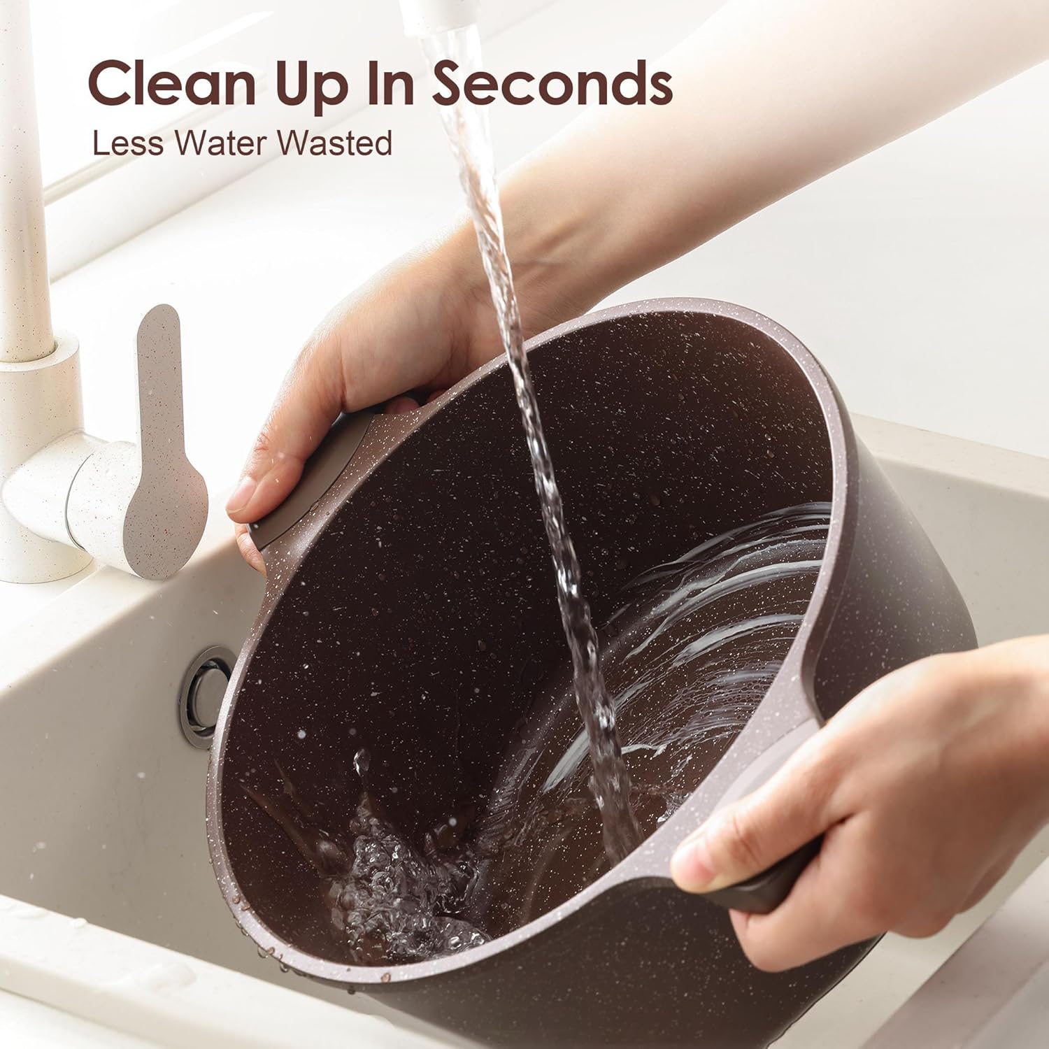 - Practical Gift:If you're seeking for a gift for your family or friends, our nonstick cookware set would be perfect for Mother's Day, Father's Day, Valentine's Day, Christmas, New Year, and house warming gifts new home, wedding gifts.
