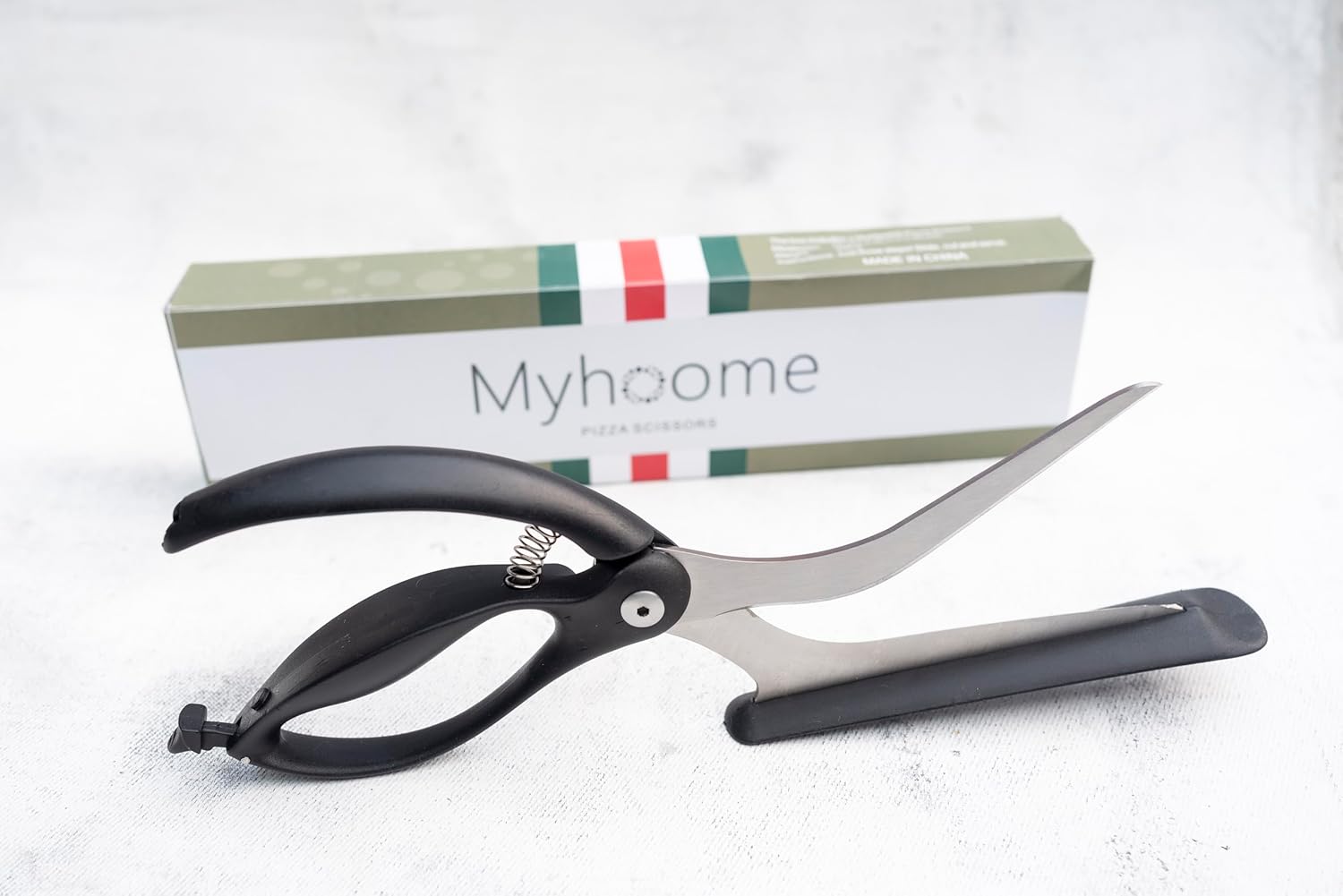 Generic MyHoome Non-stick Pizza Scissors with Secure Grip Base - Food-Grade Stainless Steel Pizza Cutter - Cutter and Pizza Server - Easy-to-Use and Clean Pizza Cutters., Black
