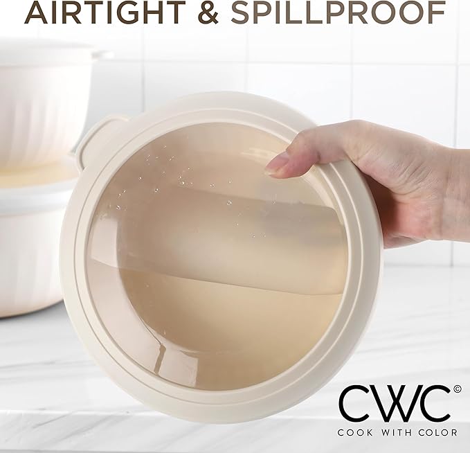 - Cook with Color 12 piece plastic mixing bowl set - non slip bowls with lids; easy to clean, sturdy mixing bowls.