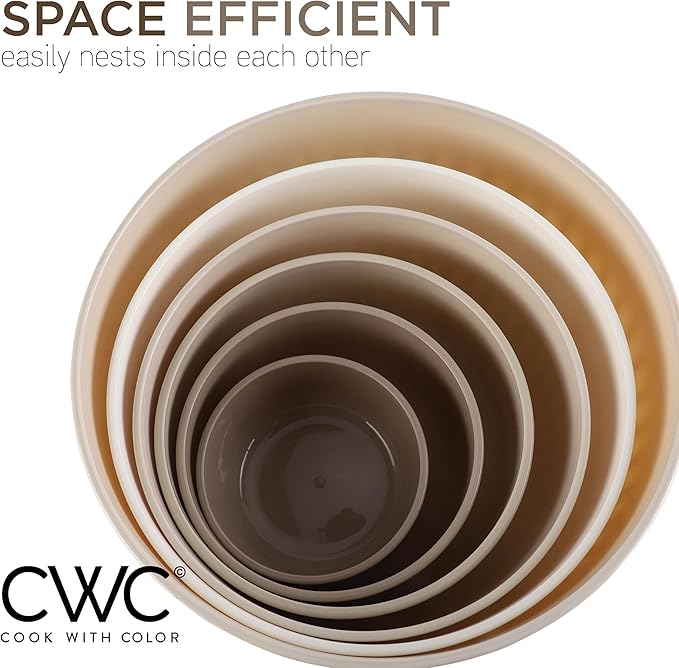 COOK WITH COLOR Prep Bowls with Lids- Wide and Deep Nesting Plastic Small Mixing Bowl Set with Lids, 12 Piece Set - Wide Bowls, Brown