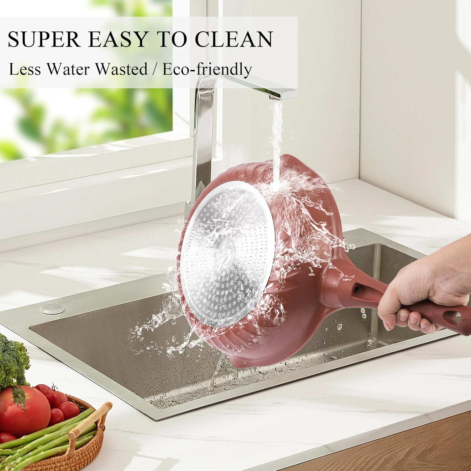 - [𝐒𝐔𝐈𝐓𝐀𝐁𝐋𝐄 𝐅𝐎𝐑 𝐀𝐋𝐋 𝐒𝐓𝐎𝐕𝐄] - To let our nonstick skillet meet the needs of more families, we specially designed the induction pan bottom. You can choose gas stove, induction stove, electric stove, halogen stove or ceramic stove at will. Heat evenly and quickly