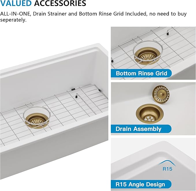 - Sink Set/Installation - Complete package includes a 33 inch white granite composite sink workstation, an acacia solid wood cutting board, a roll up drying rack, a bottom rinse grid, a gold drain assembly, etc.|Cutout Size: 31"(width) x 17"(depth)|Minimum Cabinet Size: 36 inch. Undermount/Under Counter installation creates a seamless transition from countertop to sink with no exposed edges. | If any concerns or questions, please get in touch with us, We're always ready to help you - Fulorni Service.
