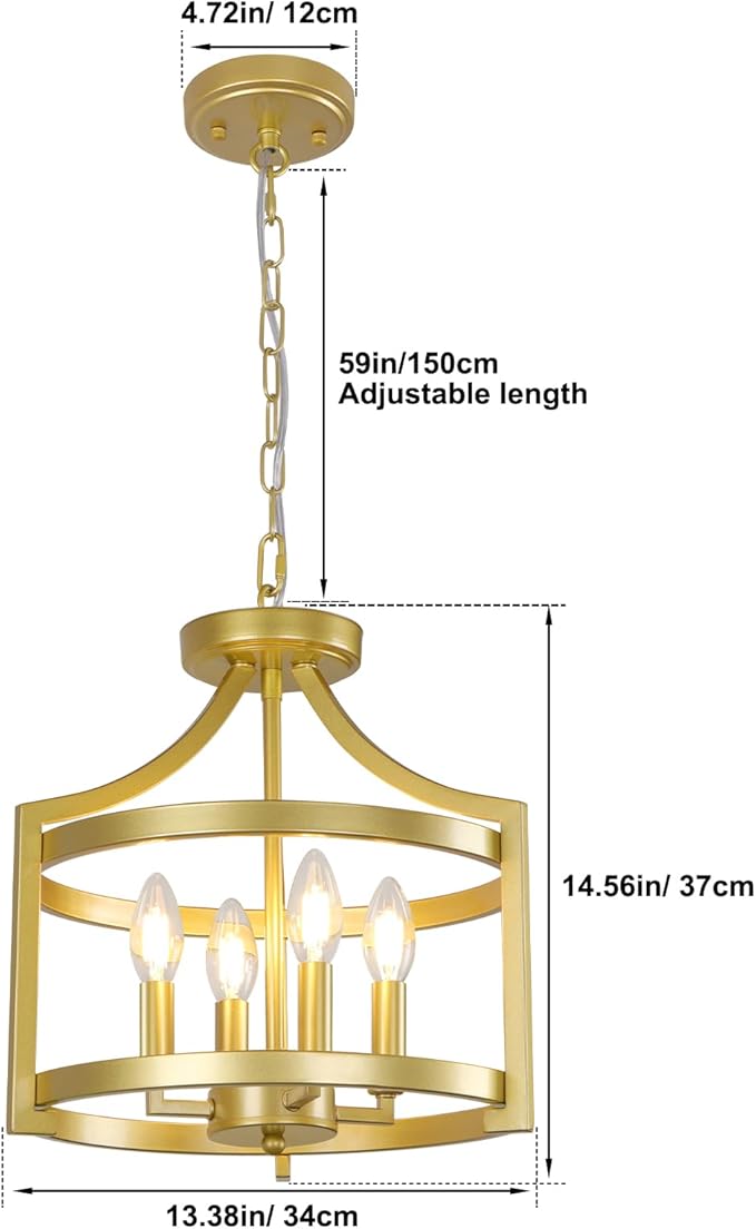 - Installation: The gold chandelier light fixture is packaged piece by piece, need to assemble. 4 light bases all come pre-wired doesn't need more wiring work and it comes with necessary accessories and instructions to install quickly and easily. It can be installed on the flat, sloped, slanted, or vaulted ceiling.