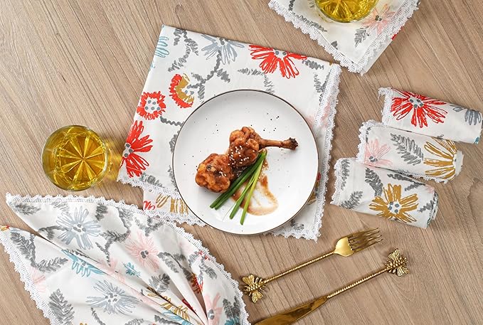 - Elegant Multicolor Lace Print: Stylish printed cloth napkins with a vibrant lace-inspired design add sophistication to weddings, parties, and daily dining.