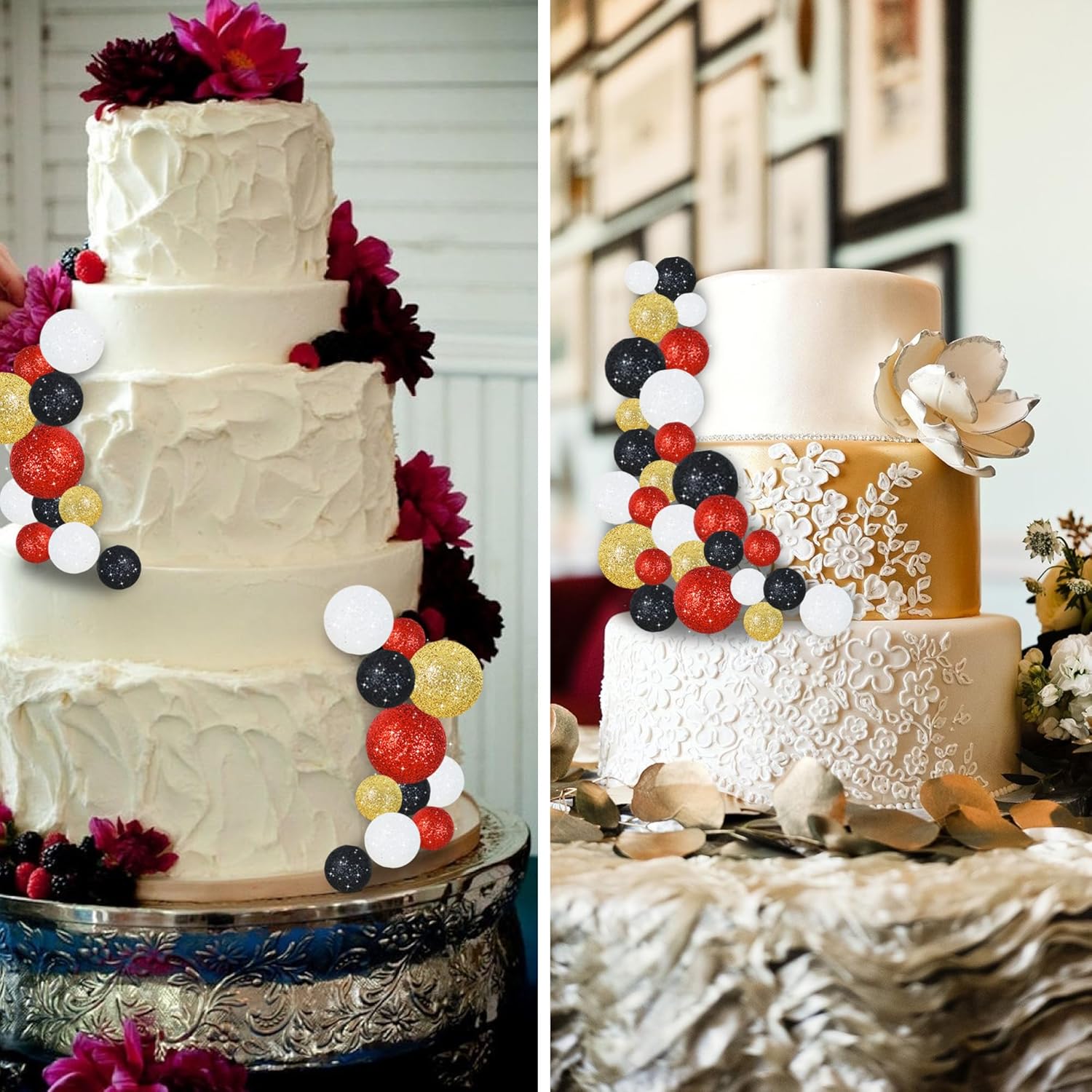 BEISHIDA 40 Pcs Foam Ball Cake Toppers with Sticks Mini Cake Decorations for Birthdays, Weddings, Baby Showers, DIY Baking Supplies, Anniversary Party (Red, Black, White,Gold)