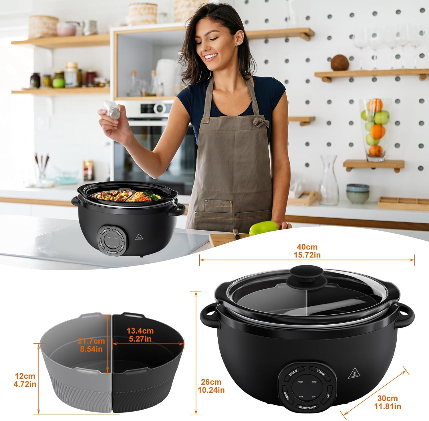 - 【Versatile Cooking Capabilities】The programmable slow cooker offers a large 7-quart capacity, making it suitable for preparing meals for large families or gatherings. The oval shape and matte black finish add a stylish touch to the kitchen.