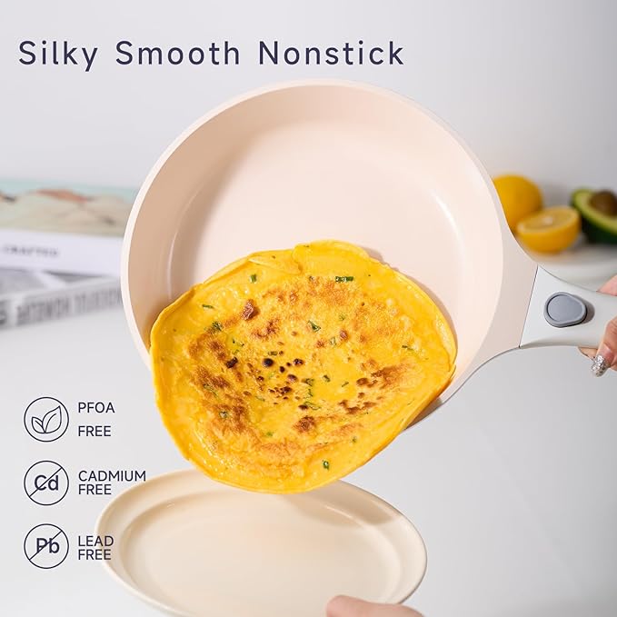 JEETEE Nonstick Pots and Pans Set with Removable/Detackable Handle (Beige, 22 Pcs)