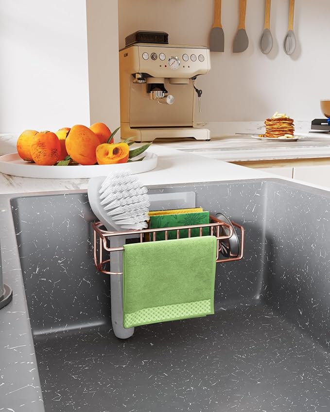 HapiRm Sponge Holder for Kitchen Sink, No Drill Kitchen Sink Caddy Organizer, Rustproof and Waterproof Dish Sponge Holder - Rose Gold