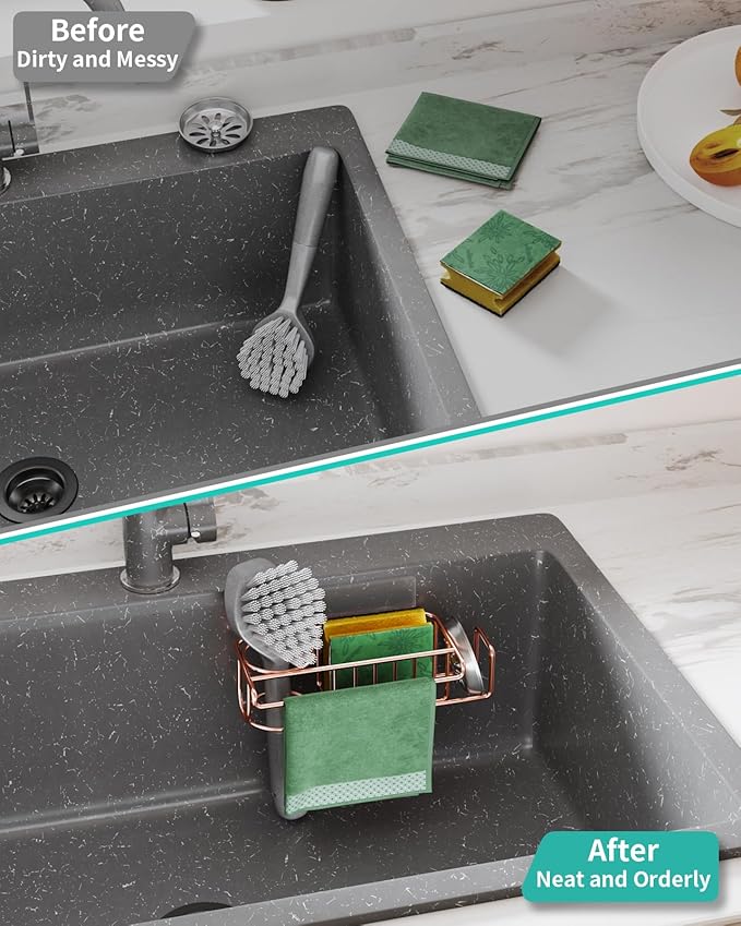 - [Support]: Our sponge caddy for kitchen sink can meet your daily needs well. If you are not satisfied with this kitchen sink sponge holder, please reach out to us