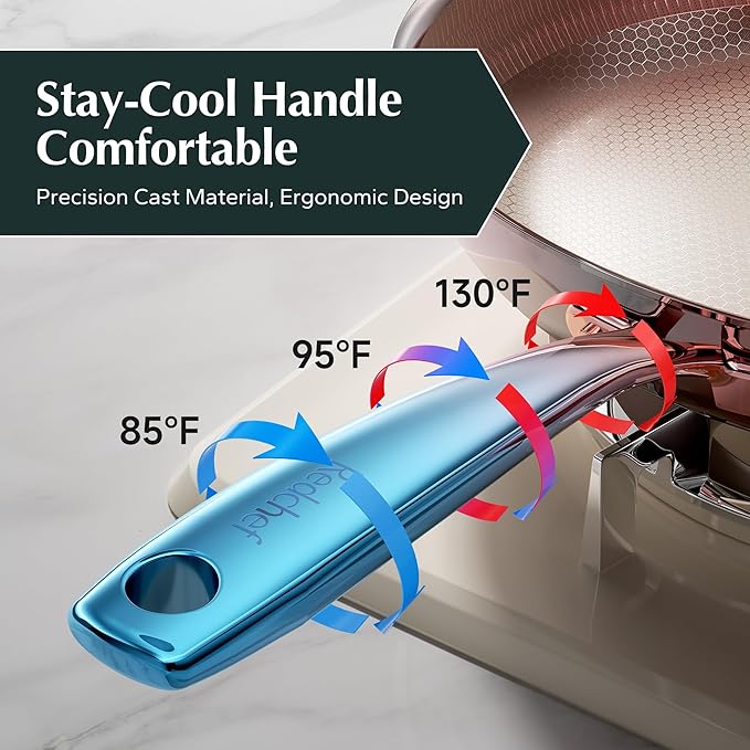 Redchef Non Stick Frying Pans, Hybrid Ceramic Frying Pan, Nonstick Skillet with Stay-Cool Handle, Non Toxic, PFAS PFOA & PTFE Free, Dishwasher & Oven Safe, Compatible with All Cooktops (8+10+12 inch)