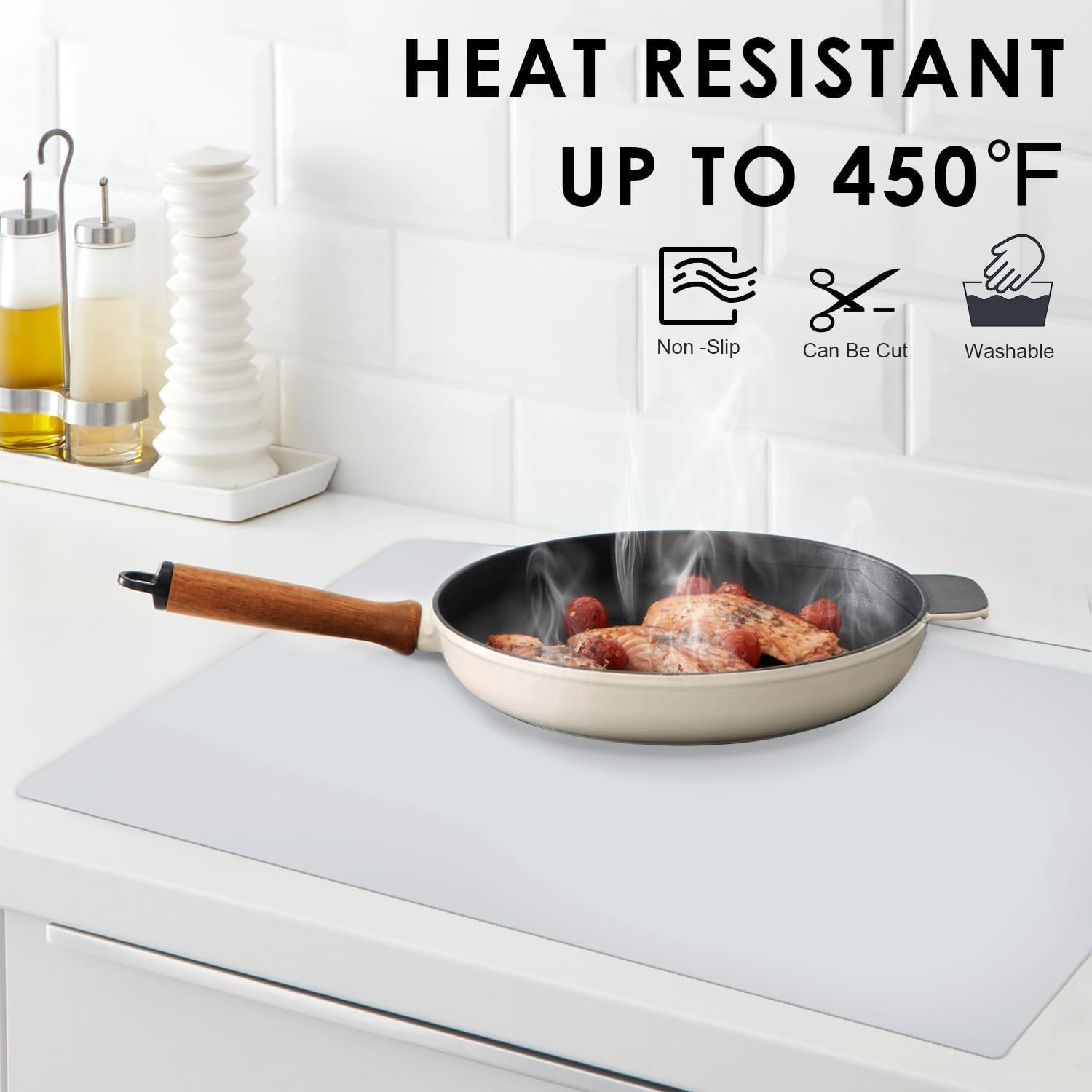 - 💕【 HEAT RESISTANT & COUNTERTOP PROTECTOR】 Effective insulation of grey silicone placemat could reach to 446℉(230℃), could protect your dining table or countertop, glass-top and cooktop from from scratches, burn, scuffs, grease, etc. Please don't put the silicone mats for counters near the open fire.