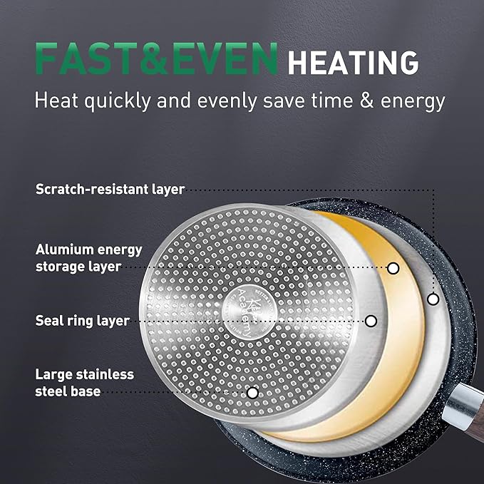 - šššš”š©šš® š¾š¤š¤š š¬šš§š ššš© š¬šš©š šš¤ššš£-šš§šš: Made of natural granite, our kitchen cookware set is Teflon-free and guarantees no PFAS, PTFE, PFOA, lead, or cadmium.Ideal choice for safety-conscious families, especially those with babies