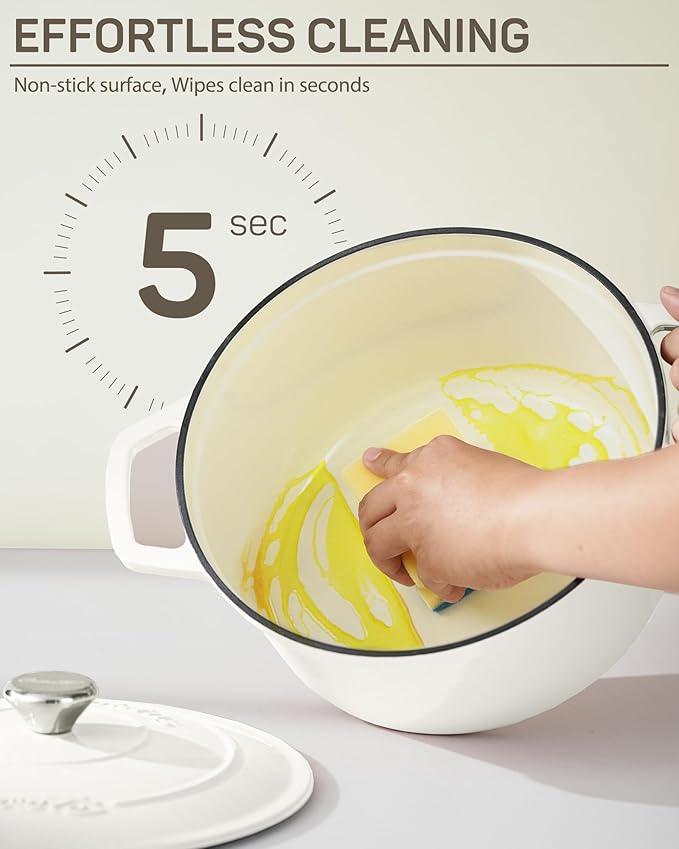 - Non-Stick & Easy to Clean: The smooth enamel interior minimizes food sticking, making cleanup a breeze. Simply wipe it clean, saving you time and effort, so you can spend more moments enjoying your meals with loved ones