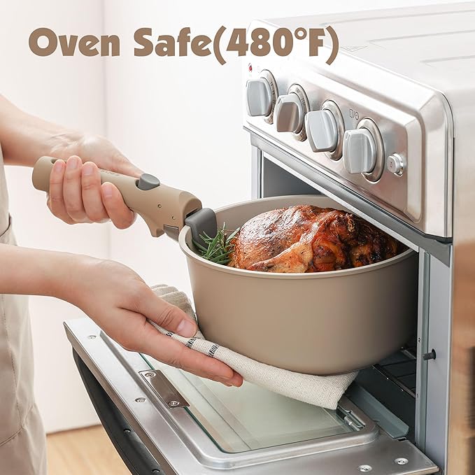 - Easy Storage - Save up to 70% more space with stackable pots and pans set and detachable handles, allowing for storage in cabinets or RVs.