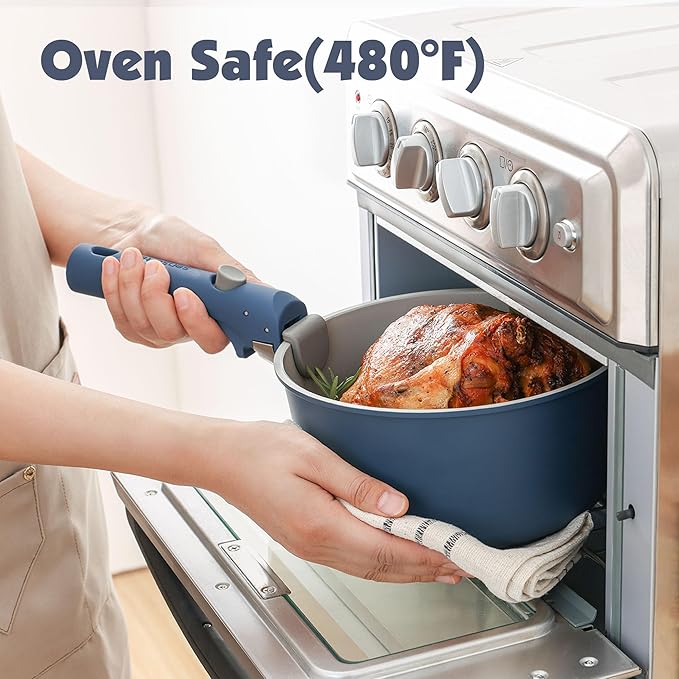 SENSARTE 17 Piece Ceramic Pots and Pans Set, Nonstick Detachable Handle Cookware, Induction Kitchen Cookware Set with Removable Handle, Dishwasher & Oven Safe (Navy)