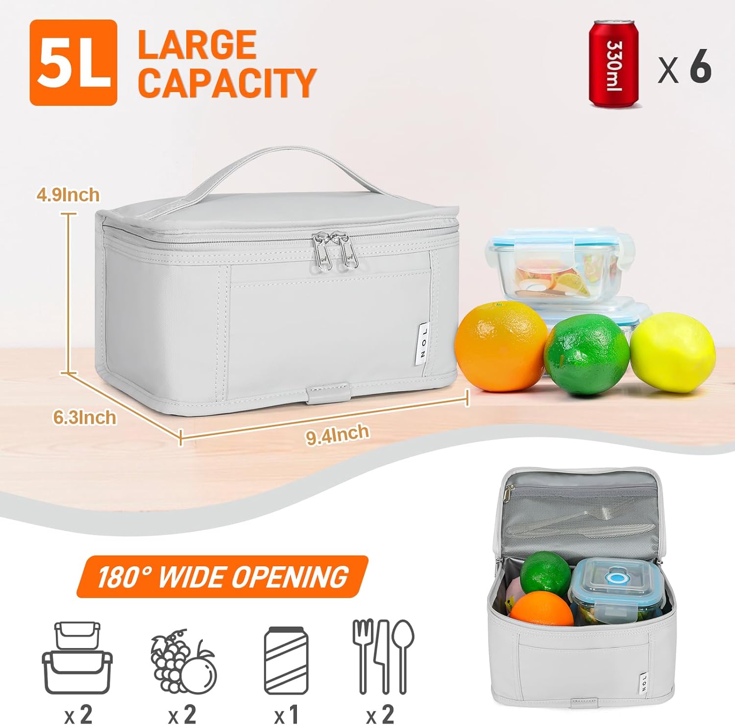 NOL Natural Organic Lifestyle Small Lunch Bag Mini Lunch Box Insulated Lunch Bag for Men/Women Leakproof Cooler Tote Bag Lightweight Nylon Waterproof Lunch Box For Work, Gray white