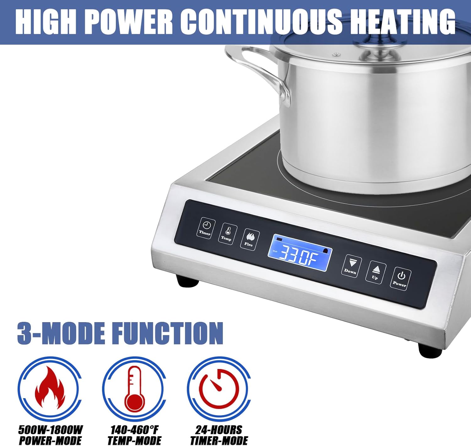 Commercial Induction Cooktop, Portable Electric Countertop Burner with Sensor Touch and LCD Screen(1800W/120V),Commercial Grade Induction cooker for Hotel Restaurant School
