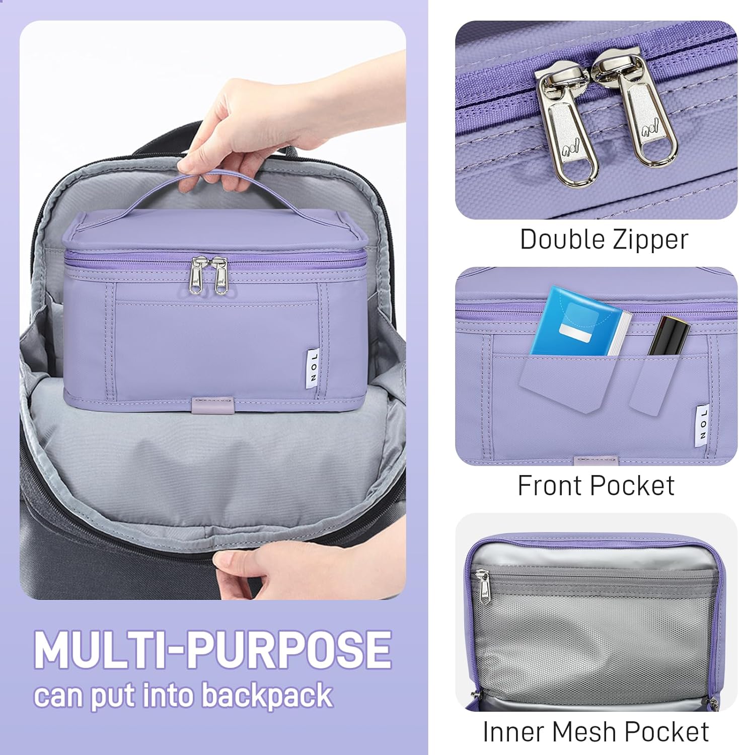 NOL Natural Organic Lifestyle Small Lunch Bag Mini Lunch Box Insulated Lunch Bag for Men/Women Leakproof Cooler Tote Bag Lightweight Nylon Waterproof Lunch Box For Work, Light purple