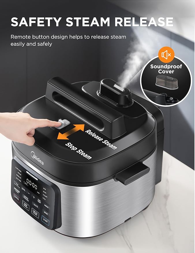 Midea WideMax 12-in-1 Electric Pressure Cooker, 6.5 Quart, 12 Presets, Multi-Functional Programmable Slow Cooker, Rice Cooker, Steamer, Sauté Pan, Cake, Yogurt, Warmer and More