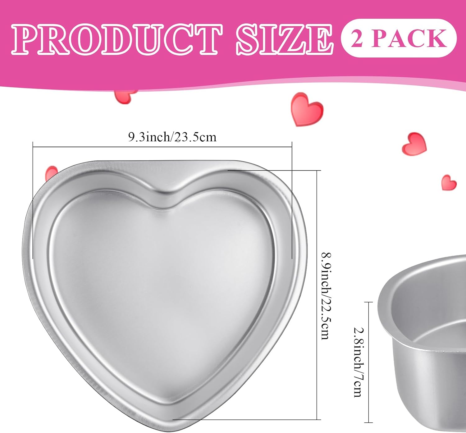 2Pcs Heart Shape Cake Pans, Aluminum Heart Cake Mold, Reusable 10 inch Cake Pan for Baking DIY for Wedding Birthday Family Occasions