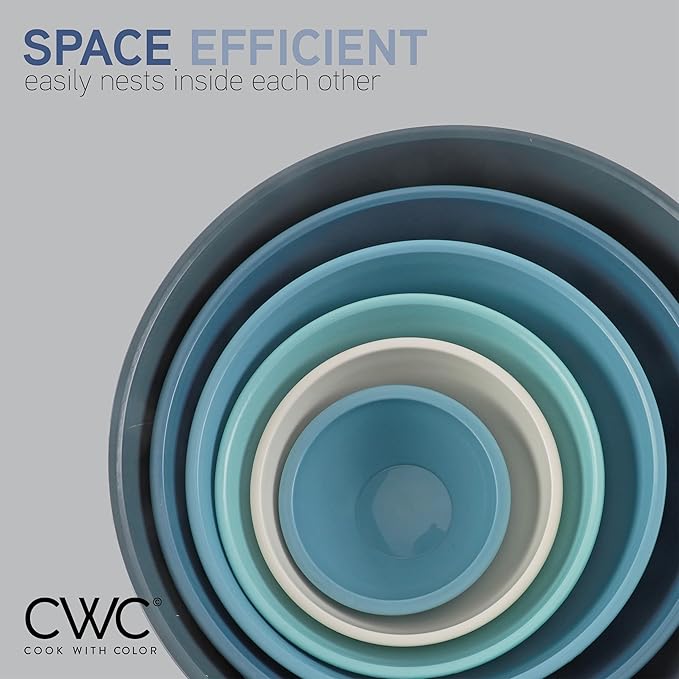 COOK WITH COLOR Mixing Bowls with Lids - 12 Piece Plastic Nesting Bowls Set includes 6 Prep Bowls and 6 Lids, Rhombus Design - Microwave Safe (Blue)