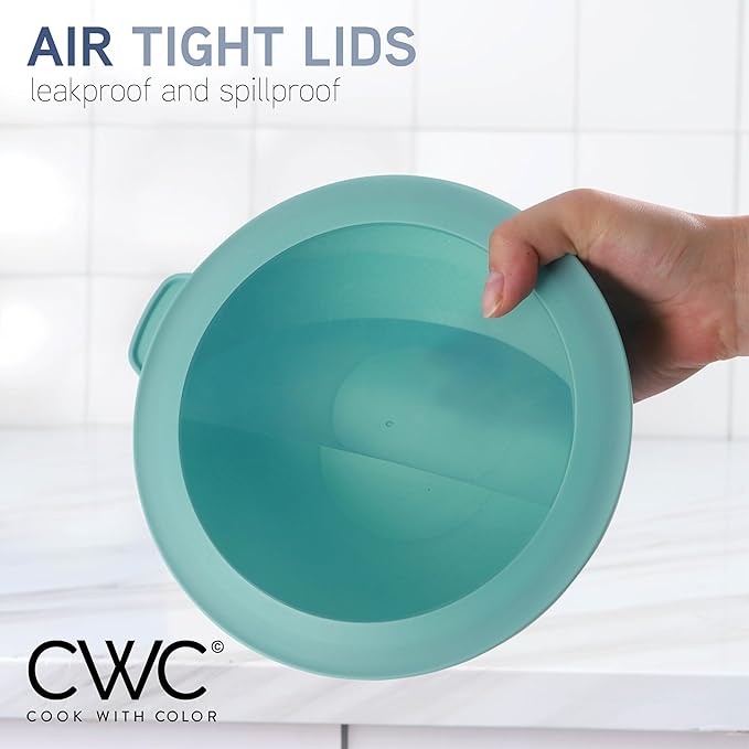 - Set includes 6 plastic bowls and 6 TPR lids; Bowl capacity of 0.32 QT, 0.74 QT, 1.37 QT, 3.69 QT and 5.8 QT.
