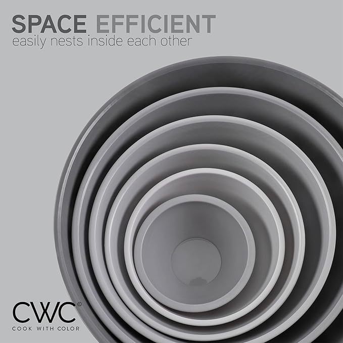 COOK WITH COLOR Mixing Bowls with Lids - 12 Piece Plastic Nesting Bowls Set includes 6 Prep Bowls and 6 Lids, Rhombus Design - Microwave Safe (Grey)