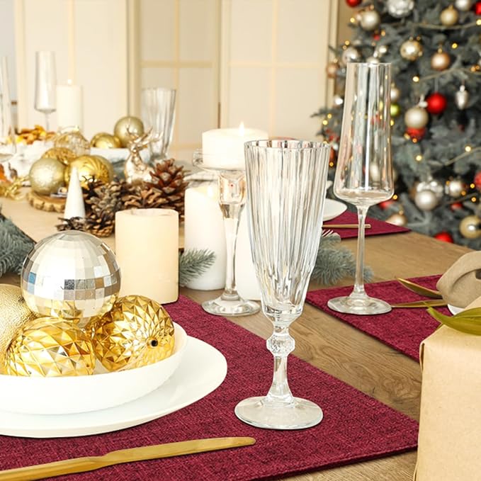 Homaxy Cloths Placemats for Dining Table Set of 6, Heat Resistant Washable Cotton Linen Blend Table Mats, Easy to Clean Place Mats for Indoor Outdoor Party Kitchen Decoration, 13" x 19", Red