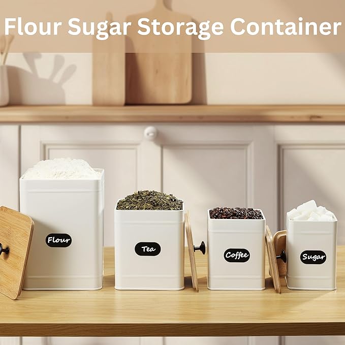 - Chalkboard Labels & Marker Pen: These four kitchen canisters come with a set of eight oval black chalkboard labels and a white marker pen, allowing you to easily personalize and organize your kitchen storage.