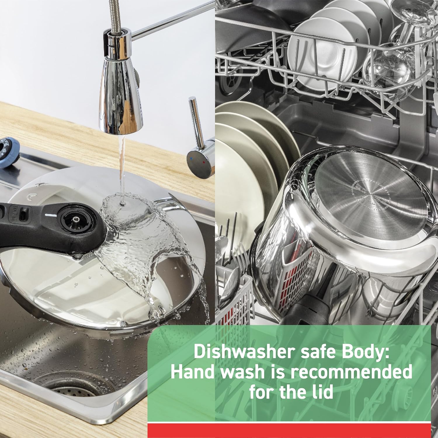 - Versatile Cooking: Our pressure cooker is compatible with all cooktops including induction, making it ideal to prepare a variety of meals. It's dishwasher safe (pot only) allowing easy cleaning. Limited Lifetime Warranty.