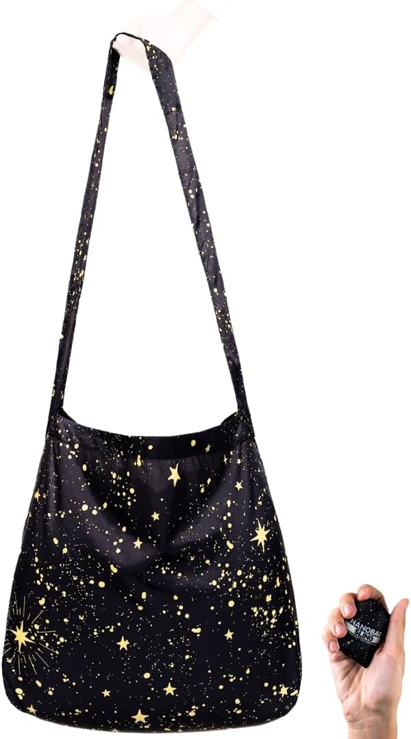 Nanobag Ultra-Lightweight Foldable Sling for Women & Men, Reusable Grocery & Travel Bag, Packable Collapsible Compact Market Crossbody (Sling Stars)