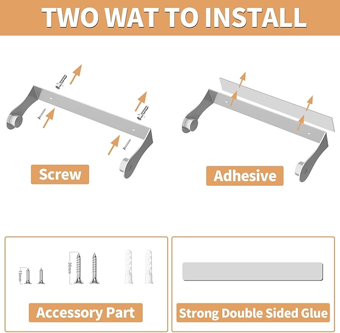 - 【Sticking or Drilling】: The adhesive backing made it easy to mount without any special tools or expertise. It’s a great option for renters or anyone who prefers not to make permanent alterations. It can also be drilled, Using long screws on the wall and short screws on the cabinet.