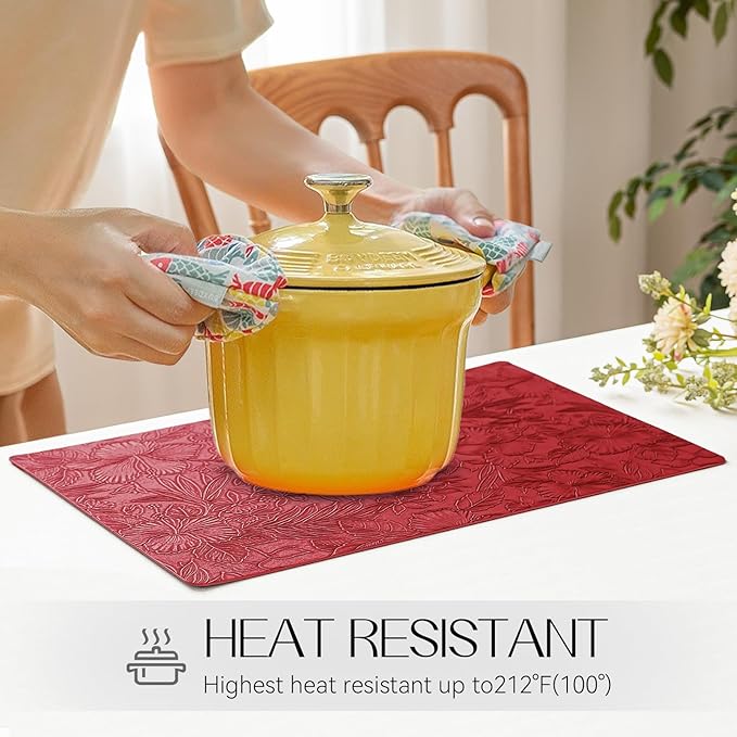 - LONG-LASTING & HEAT-RESISTANT: Both sides are made of high quality and heat - resistant faux leather. The highest heat resistance temperature of the placemat reaches 212℉/100 ℃.It's ideal for protecting your table's surface from hot dishes and liquid spills.