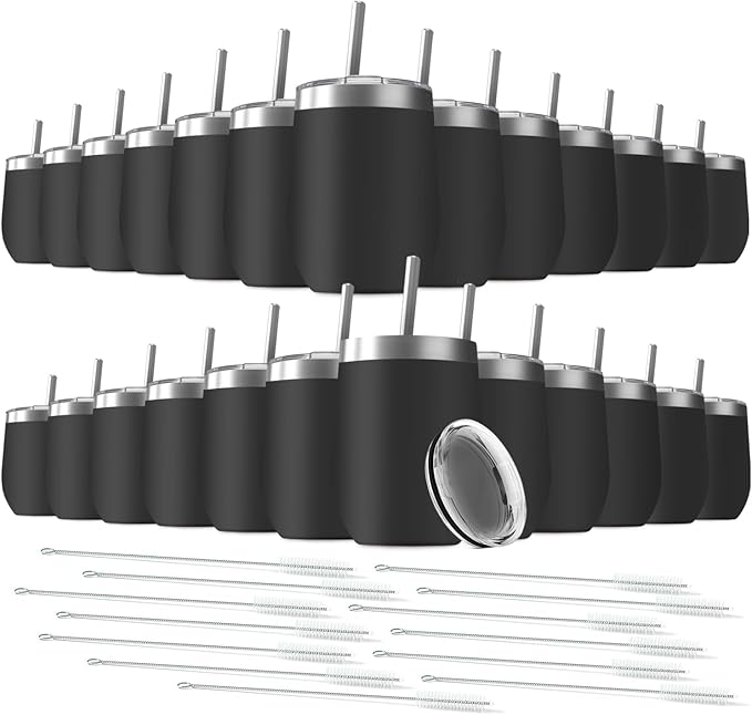 12oz Wine Tumbler with Lid With straw Stainless Steel Wine Tumbler Cups Double Wall Vacuum Insulated Travel Mugs Stemless Cup 25 Pack