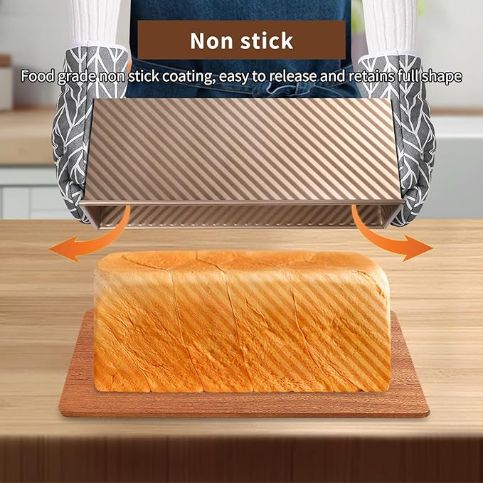 Pullman Loaf Pan with Lid, Pullman Loaf Pan 2.2 LB/1 LB, 2 Pack Nonstick Sandwich Bread Pan, for Bread, Sandwiches, and Toast, Golden, Deep Side and Corrugated