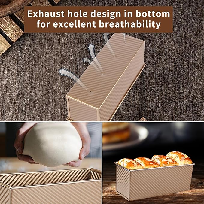 - The elegant gold finish is great addition to your kitchen. Whether you're an amateur baker or a professional, these pullman bread pan will meet all your baking needs for sourdough bread, sandwich, ice cream french toast and homemade bread