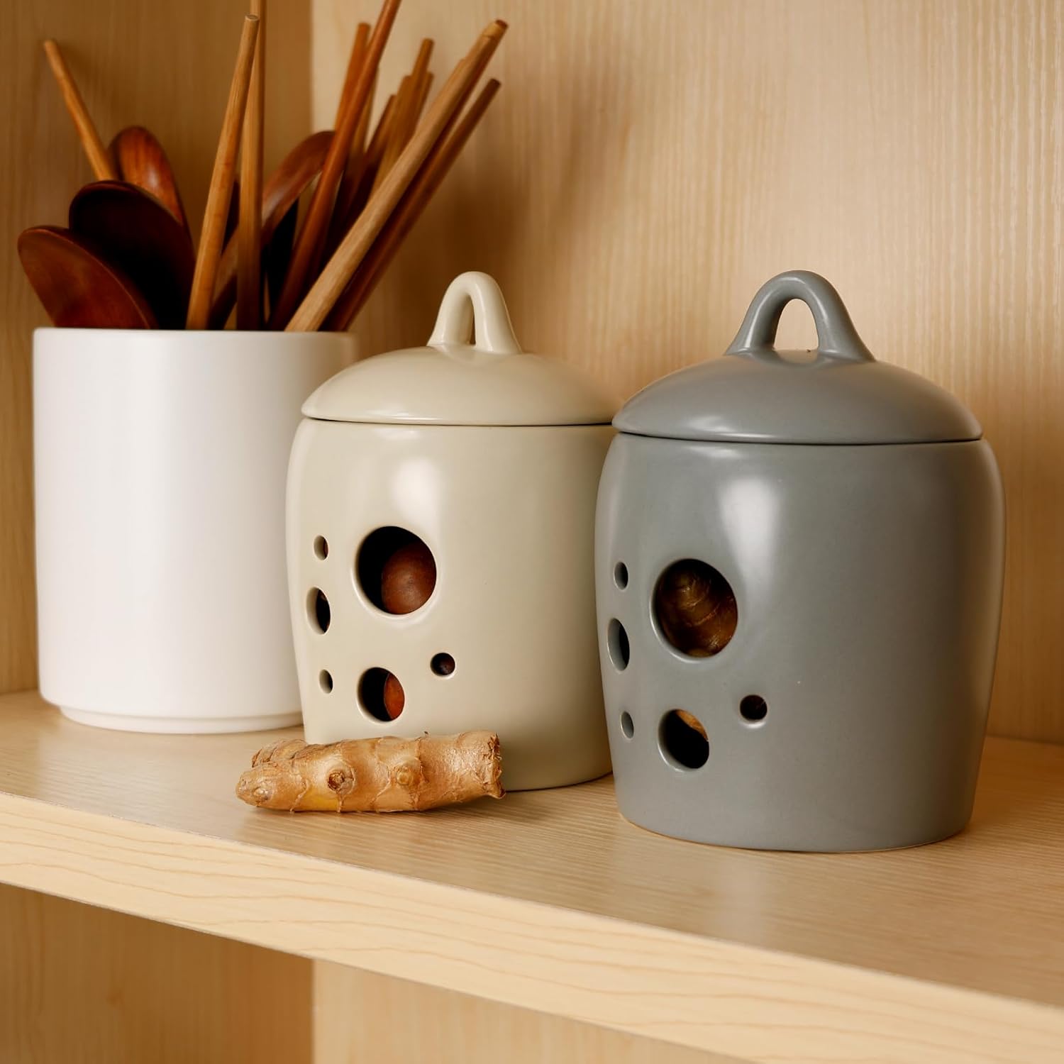 - Elegant Grey Ceramic Design: Made from premium gray ceramic, this garlic container storage boasts a sleek and elegant look that complements any kitchen décor, serving as both a functional and decorative piece