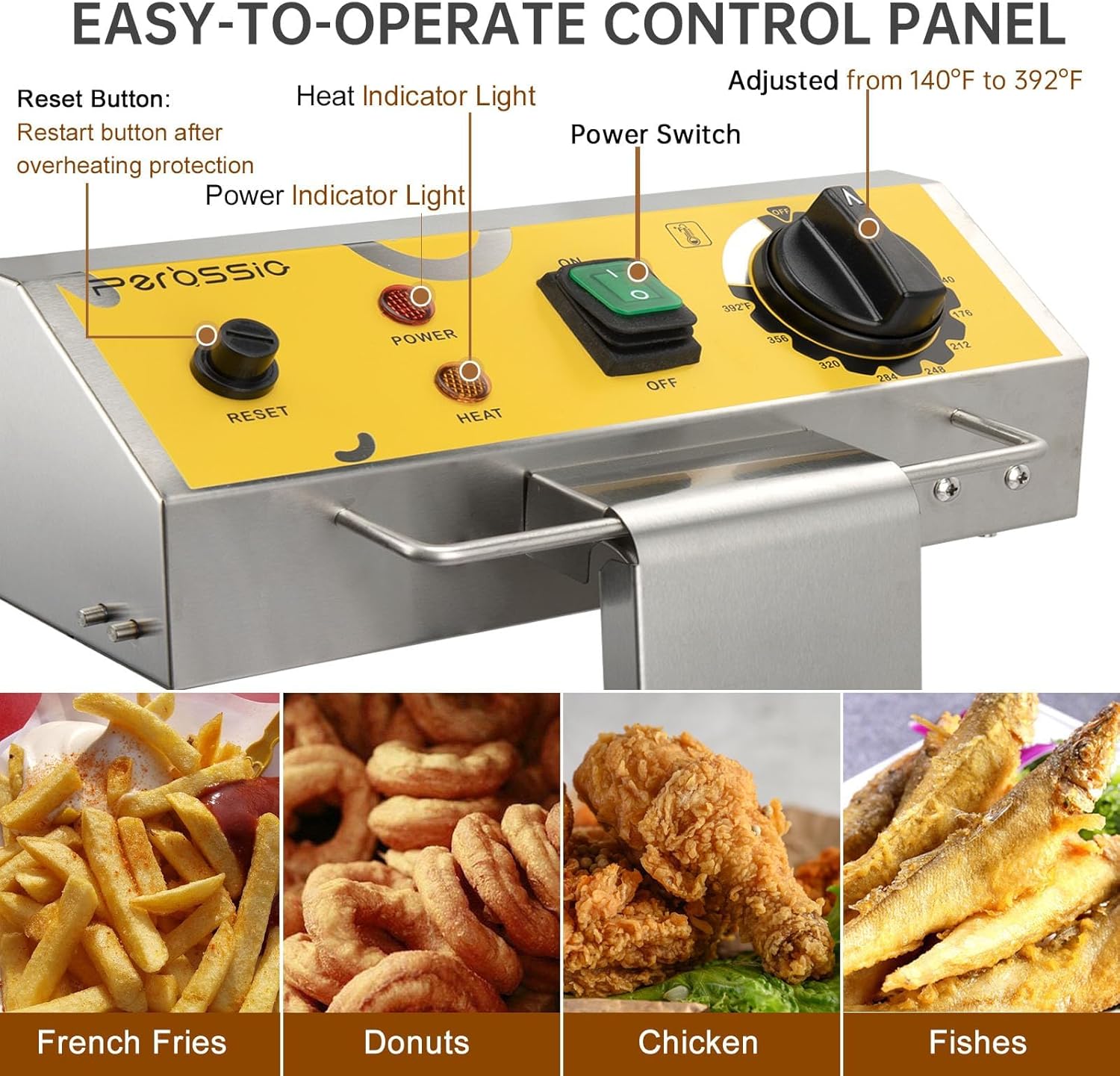 - Easy Cleaning - The removable basket of deep fryer commercial comes with plastic handles to avoid burns and a lid to avoid splashing of boiling oil. Completely removable design allows for faster draining, cleaning and easy storage