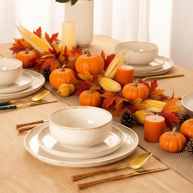 - STRENGTH AND DURABILITY: Our plates and bowls set is chip-resistant and more sturdy due to the 13-hour burn under 2340 °F. The glaze is extra strong to prevent scratches from your knives and forks, ensuring that they remain looking new even after years of use.