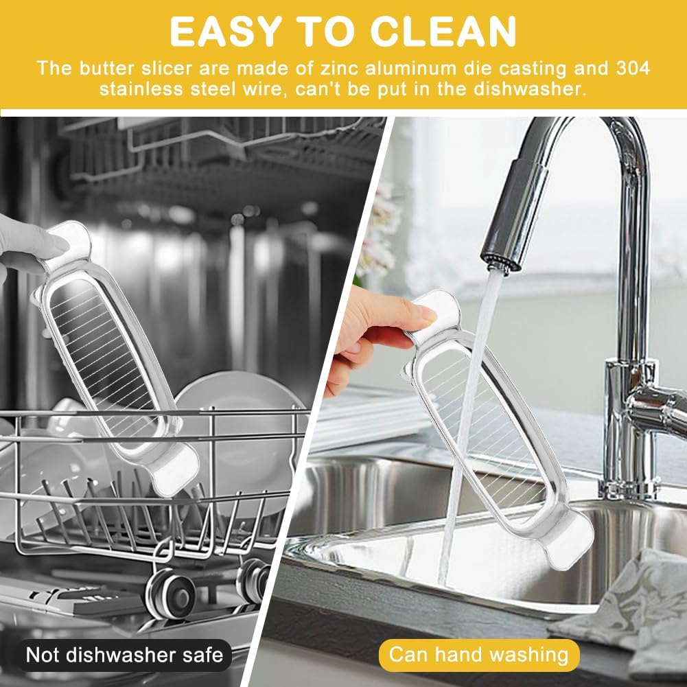 - Ergonomic Design for Easy Cleaning: The butter slicer cutter features a simple yet ergonomic design, making it easy to use and maintain. After slicing, simply hand wash or place it in the dishwasher for quick cleanup. Its stainless steel construction ensures durability and hygiene, perfect for busy kitchens or frequent use