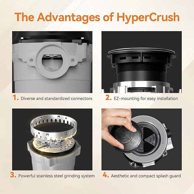 Garbage Disposal, TECASA 1/2 HP Pro Food Waste Coutinuous Feed, Garbage Disposals with Stopper Power Cord, Stainless Steel Grinding System for Kitchen Sink - HyperCrush 50 PRO