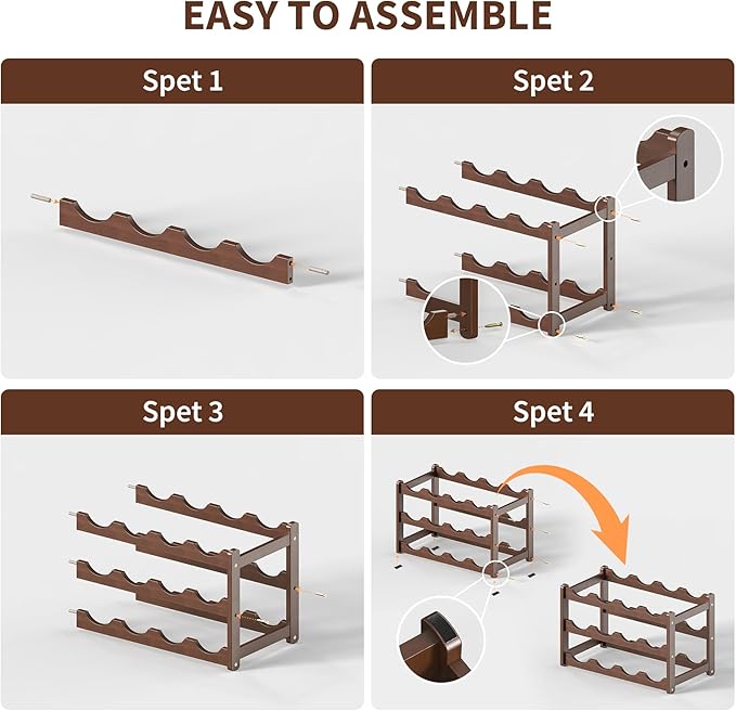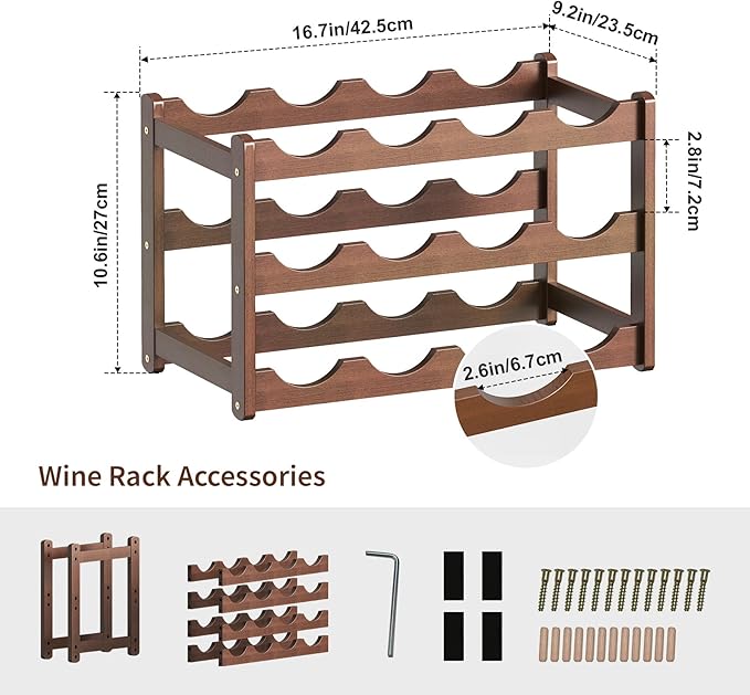 - 【Tool-Free Assembly in 5 Mins】DIY bamboo wine rack need to be assembled. Easy to assemble, just use a hex wrench to screw the screws into the pre-drilled holes