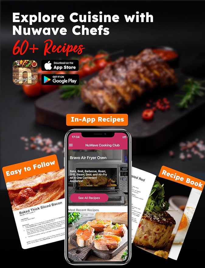 - 3X FASTER, 35% AIR CRISPIER: The 2025 newly designed designed and engineered fan and housing deliver 100% faster speeds. Paired with 1800W high power, it results in significantly faster cooking and irresistibly crispy, golden-brown finishes. Compared to traditional deep frying or air frying, Nuwave Bravo Air Fryer Oven reduces oil by 95%.