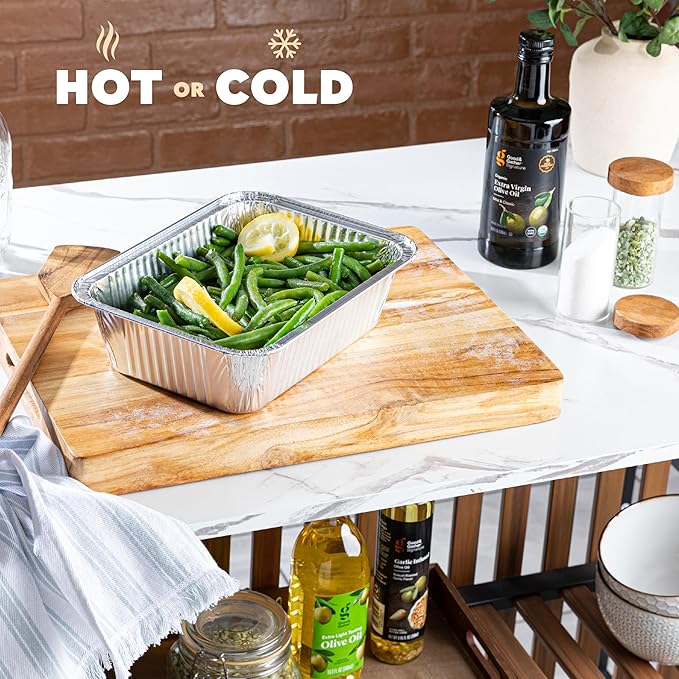 - Versatile: Aluminum foil pans are great for baking cakes, cooking, roasting, braising, grilling, and more. Use for meal prep and food storage. Great for freezing food and staying organized.