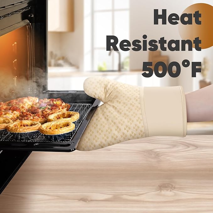Oven Mitts and Pot Holders 4 Sets, Heat Resistant 500 ℉ Oven Mitt and Pot Holder,Oven Glove&Potholders with Non-Slip Silicone Surface,Kitchen Essentials for Cooking/Baking/BBQ-Beige