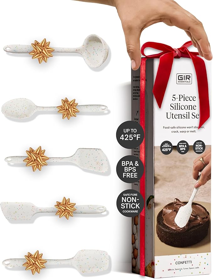 GIR: Get It Right 5-Piece Silicone Essentials Kitchen Utensils Set - Ladle, Spatula, Flip, Spoon & Spoonula - Non-Toxic Cooking Utensils for Nonstick Cookware, Cooking and Baking - Party Confetti