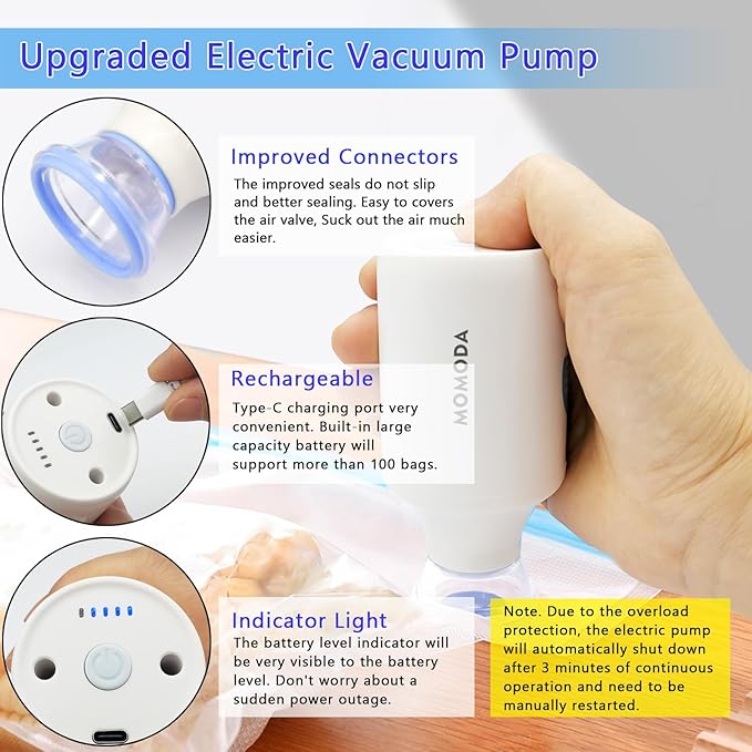 - 【Upgraded Vacuum Pump】Our upgraded Electric vacuum pump is designed to easily and cleanly suck out air, with no need to spend much time aligning the pump and valve.