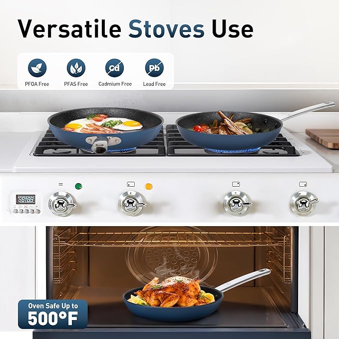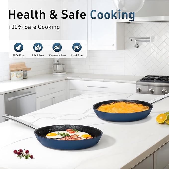 - 【Healthy Coating】: Non-stick cookware using plasma titanium and other high-tech composite material surface treatment, completely free of PFAS, PFOA, and other harmful substances, have better wear resistance and high temperature resistance performance