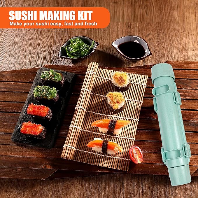 Sushi Making Kit, Sushi Roller, Sushi Bazooka, Sushi Maker, Bamboo Sushi Rolling Mat For Beginners (Green)